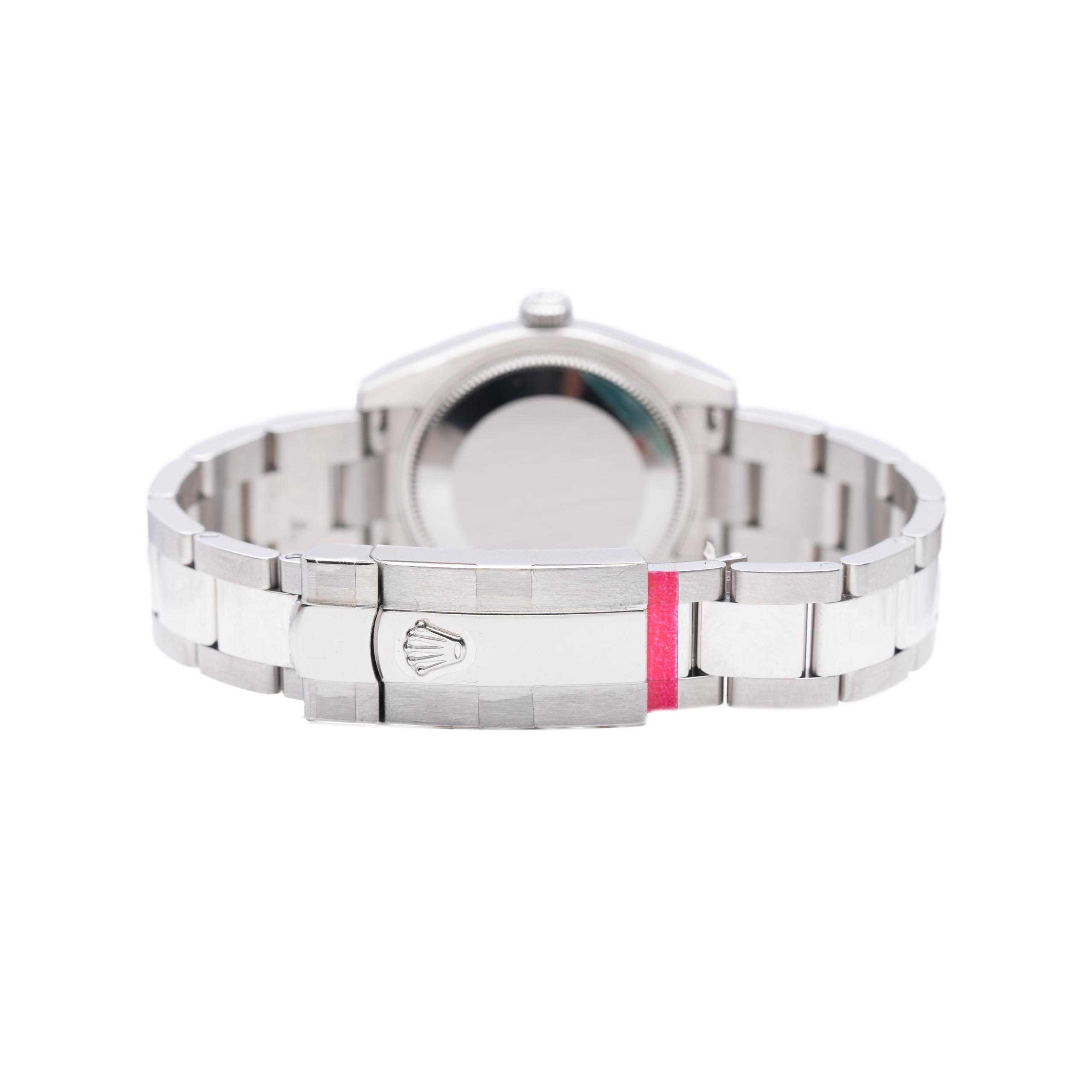 Rolex DateJust 31 aus dem Jahre 2010 mit einem 31 mm Gehäuse in Edelstahl und Faltschließe. Die Damen Rolex Uhr befindet sich in einem ungetragenen Zustand. Weitere Produkteigenschaften finden Sie unten stehend.